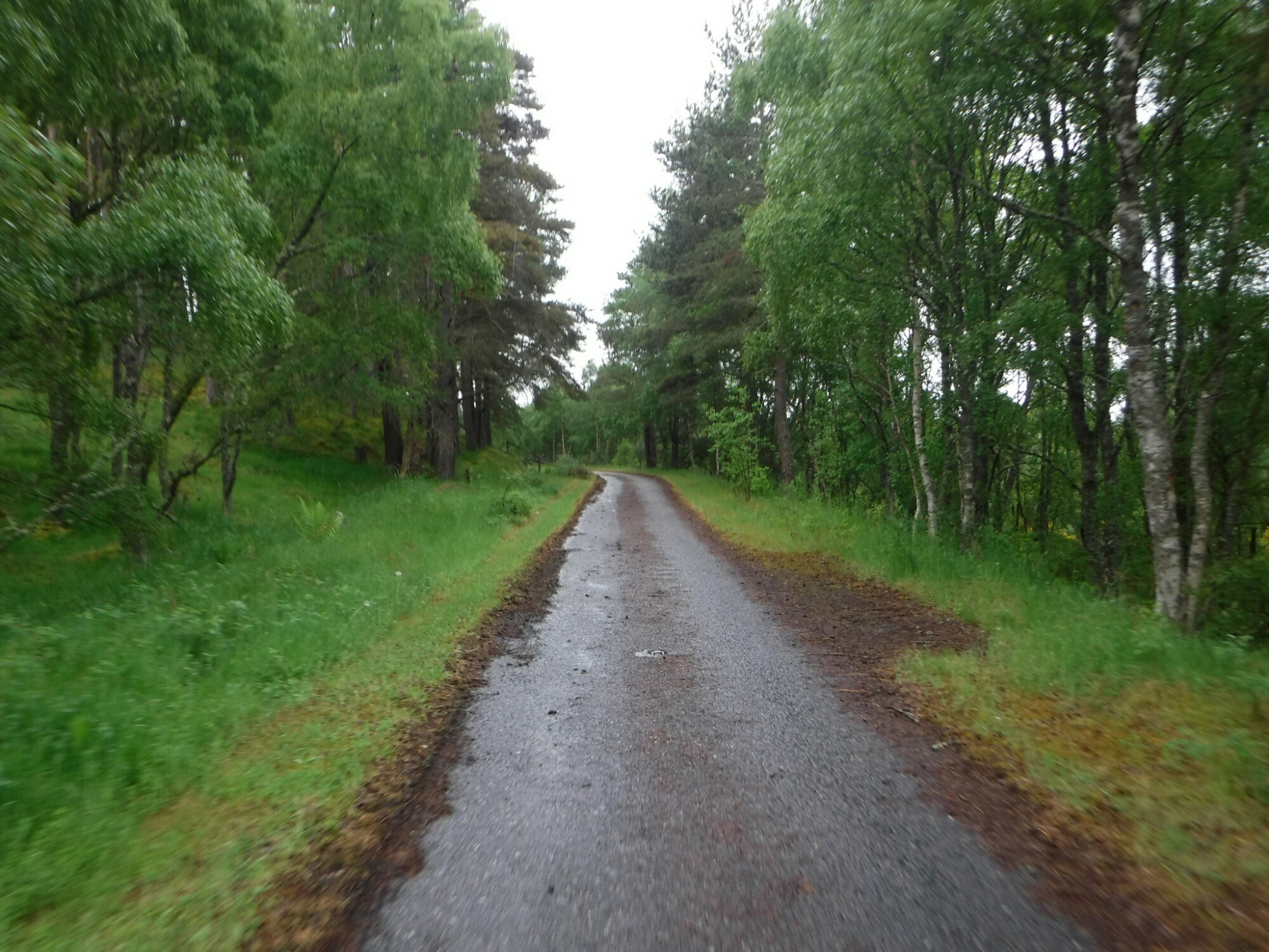 Within 2 miles came across a roadside cafe, I decided to stop before getting too wet, and becoming an embarrassment. It was a good move as a nice coffee and bacon sandwich set the day up perfectly. A work colleague, Richard, is starting his “End to end” today from Cornwall (the opposite way – LEJOG as opposed to JOGLE), so I thought I would let him know the benefits of neoprene overshoes for cycling all day in the rain. He was travelling on the train to Penzance ready to start later in the day and we should cross over in the Midlands somewhere if our planning has been any good. The route carried on gradually climbing after Dalwhinnie, it all became a bit wilder and the Pitlochry cycle track was alongside the A9 for miles, weaving from alongside the road to the old road, with lots of little bridges.