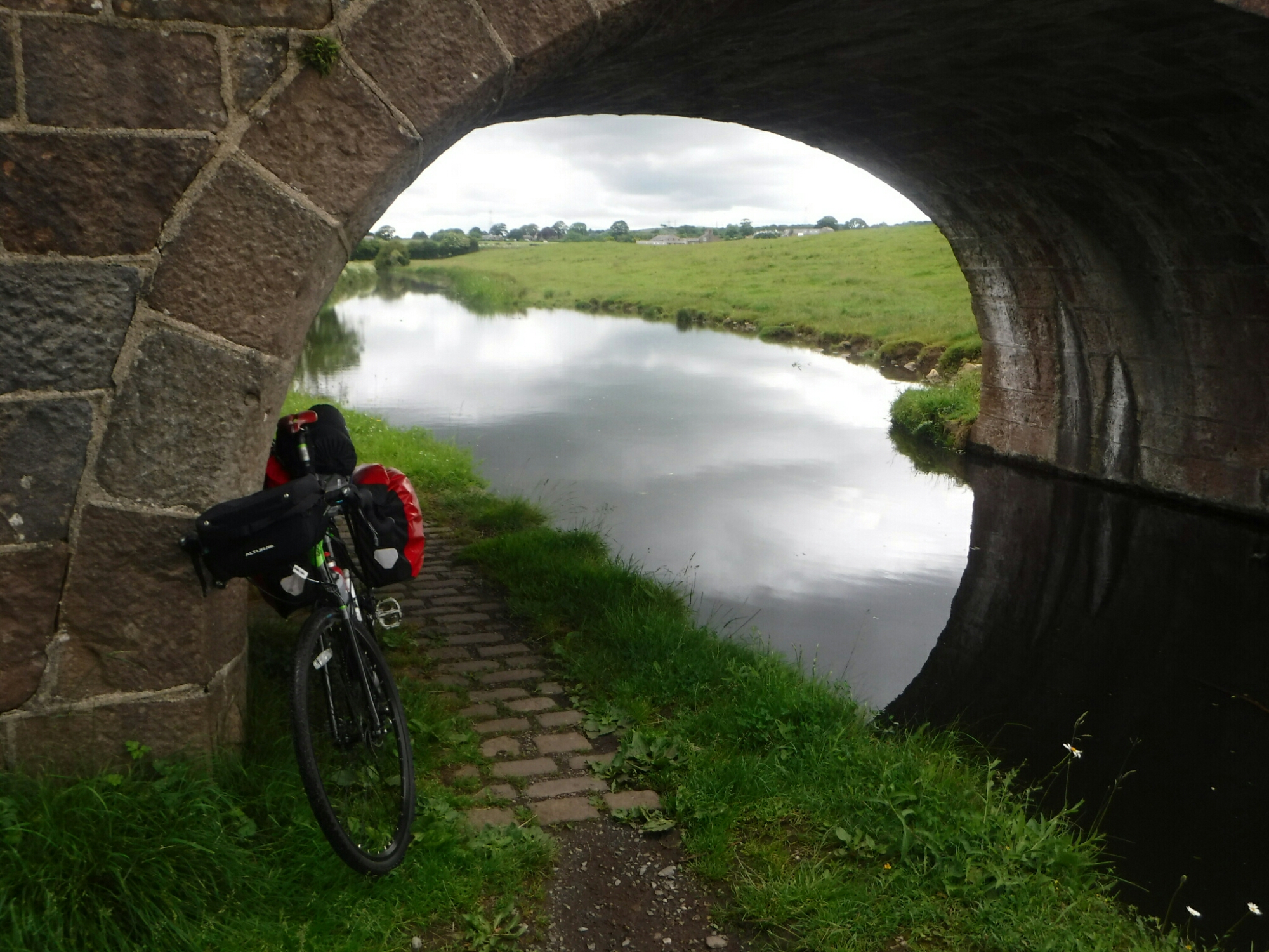 Some bits were a bit narrow, and I started pondering what would happen if I fell in. Would the air in the bags keep it afloat and should I tie my cord to the bike so I could jump clear, and haul it ashore. In the end, I just cycled along taking extra care. It was easy cycling on the flat, I diverted into the centre of Lancaster just to see what was going on. Not much, just commuters and students, so back onto the canal network. Some of the paths became rutted and bumpy so I was very glad of the bigger/fatter tyres, even so it’s does become wearing after a while, with all the concentration required. At one point I was chasing a heron down the canal, it would see me, fly off and land, and then repeat.