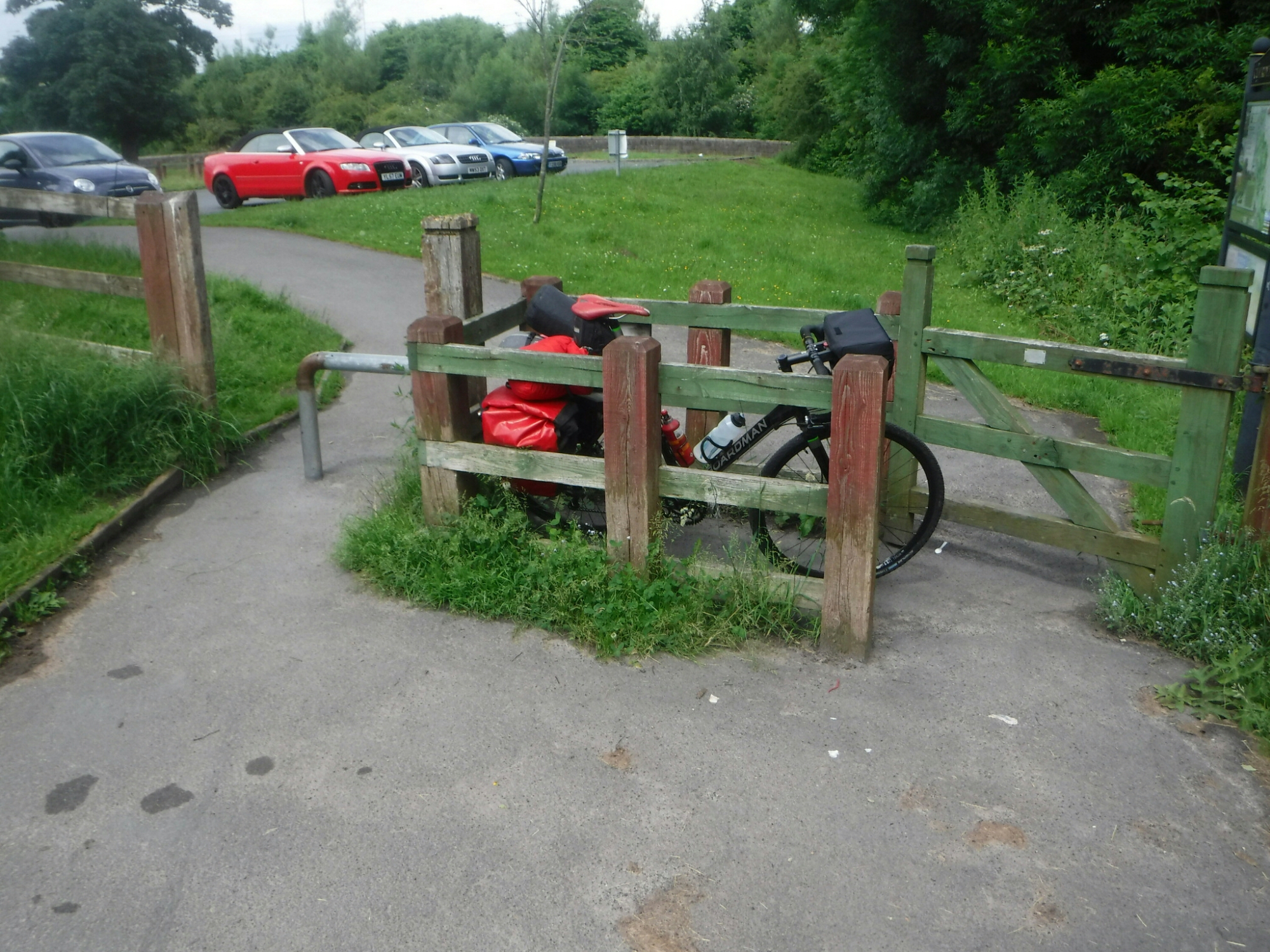 My route then took me on an old tramway through lots of joined up country parks towards Chorley. The biggest problem was the gates. I can understand the need to stop motorbikes and stuff, but I couldn’t get my bike through. The best plan was to reverse in, lift the front wheel vertically swing the gate and then drop the bike down – really easy – not, who thinks these up? Later on, on the canals they are worse, much smaller and with a nice big puddle to receive your panniers when you tip it up. Nearly everyone just lifted the bikes over the gate, but if you are losfed up it’s impossible.