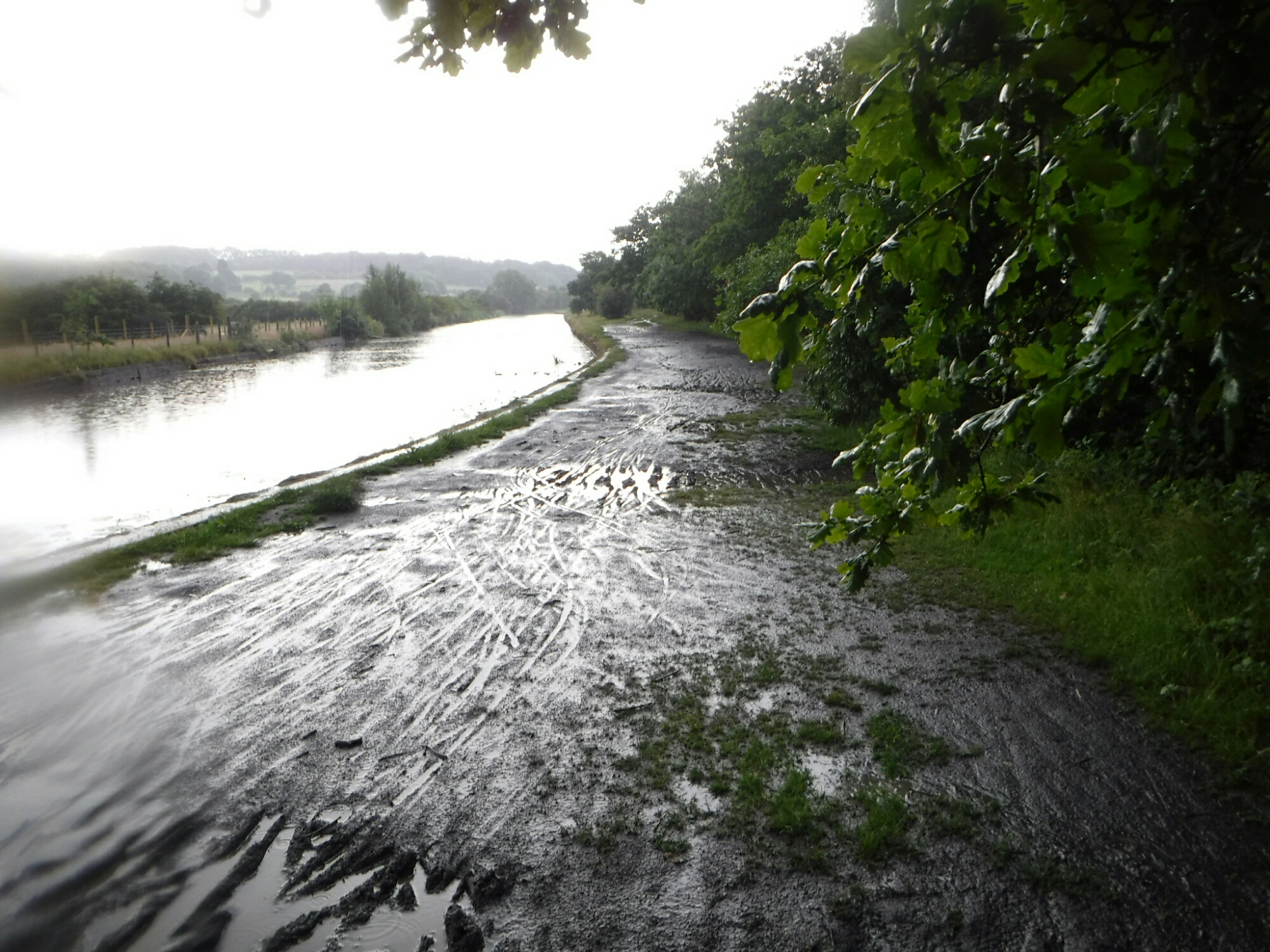 I had to cycle back about a mile in the pouring rain to get on the right side. I got as far as I was planning on the canal, and rejoined the road. The rain had abated a bit, but there was a huge amount of water on the road. I found a bus stop to ‘re-plan again. Eventually I got hands dry enough to operate the phone, and found a campsite 8 km away in Kenyon.