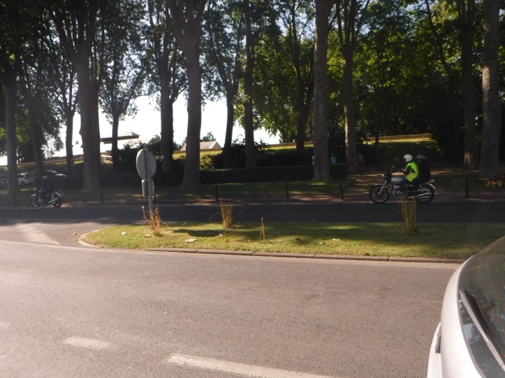 There was a cycleway all through town, it was just hard trying to second guess where it was going to go next, so had to stop at each turn or slowly sharing paths with pedestrians. Eventually made it out and continued on the south bank (this meant missing out on Lulu Park, the Guinguette, Vouvray and the troglodyte dwellings – I recommend them all except Lulu Park). I was getting close to Amboise, and my anticipated 80 km day was touching 100km, so the route kicked up into the vineyards for bit more exercise. I got into Amboise about 5:00 and shopped before going to the campsite. The small shop didn’t have any meths (or Alcohol a Brulee as the French call it), so I bought a cold tea. While I was in the town, a huge parade of vintage (?) Suzuki two strokes motorcycles went past. There must have been around 100 bikes including quite a few GT750s, a mad machine. Back in the day a friend had one – a triple cylinder, water cooled two stroke that were nicknamed “Kettles” for their ability to boil water! The two stroke noise was immense and the air was filled with blue two stroke fumes, ahh the good old days!