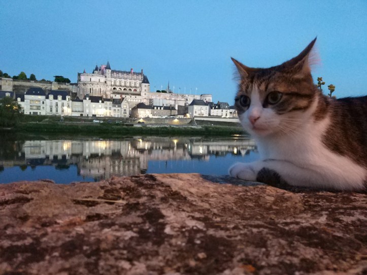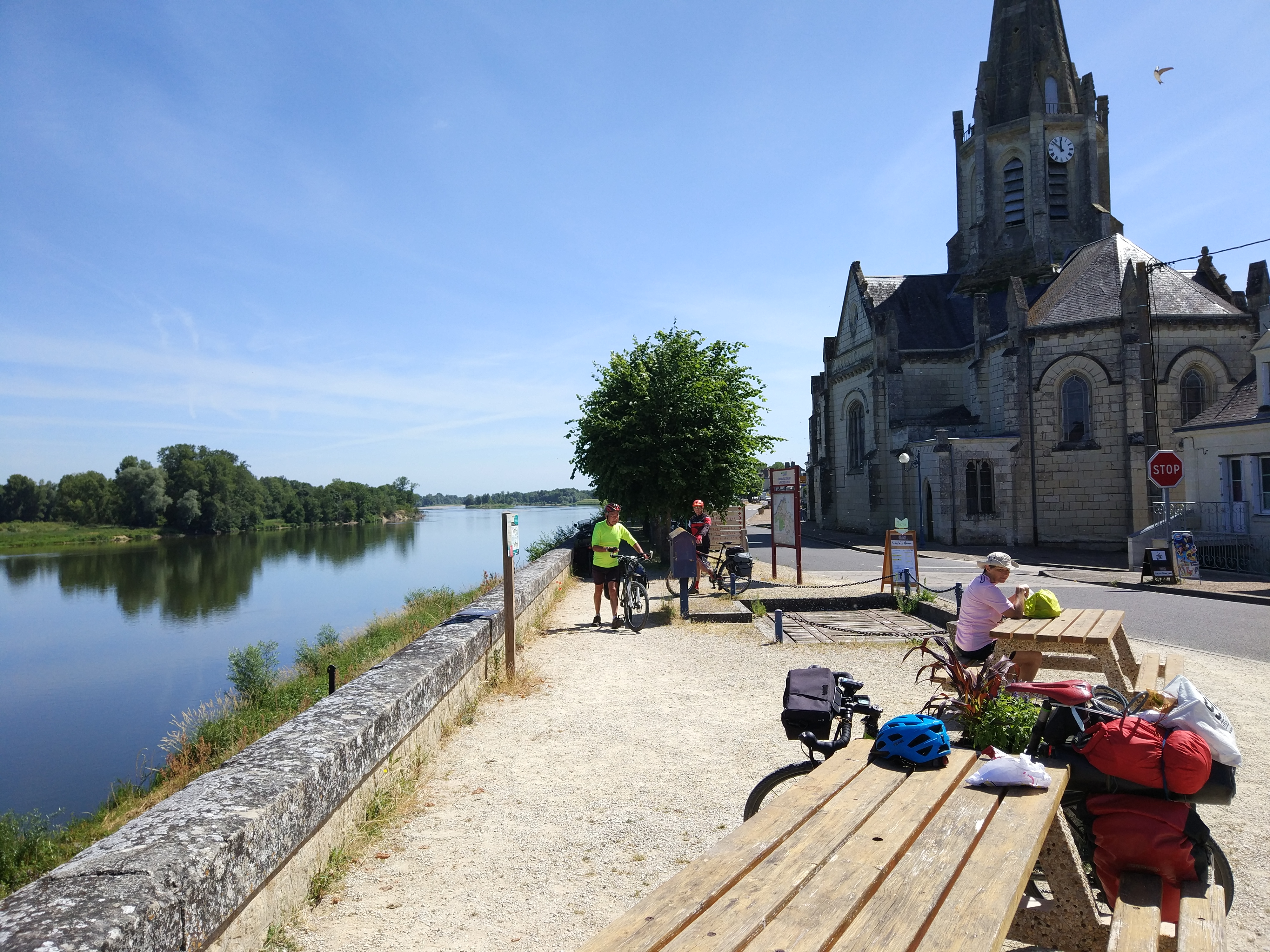 Anyway I packed up and got away later than usual but was expecting an easy 80km day to Amboise mostly along routes I knew. First suprise is that the village I’d been staying in, had an old part with a magnificent abbey. The route crossed the river and wound across farm land with occasional views of Chinon Nuclear Power station. The distance markers really were confused with it seeming possible to lose up to 5km while never leaving the route, the signsposts seemed pretty random. There was quite a headwind at times and I had to get down on the drops to avoid the worst of it. I’d seen quite a few recumbent bikes in the last few days which must really help in headwinds (and comfort), but they always look awkward – today, an old boy on a really heavily laden one came the other way and just clattered over the lumps and bumps as your legs can’t do any shock absorbing.
