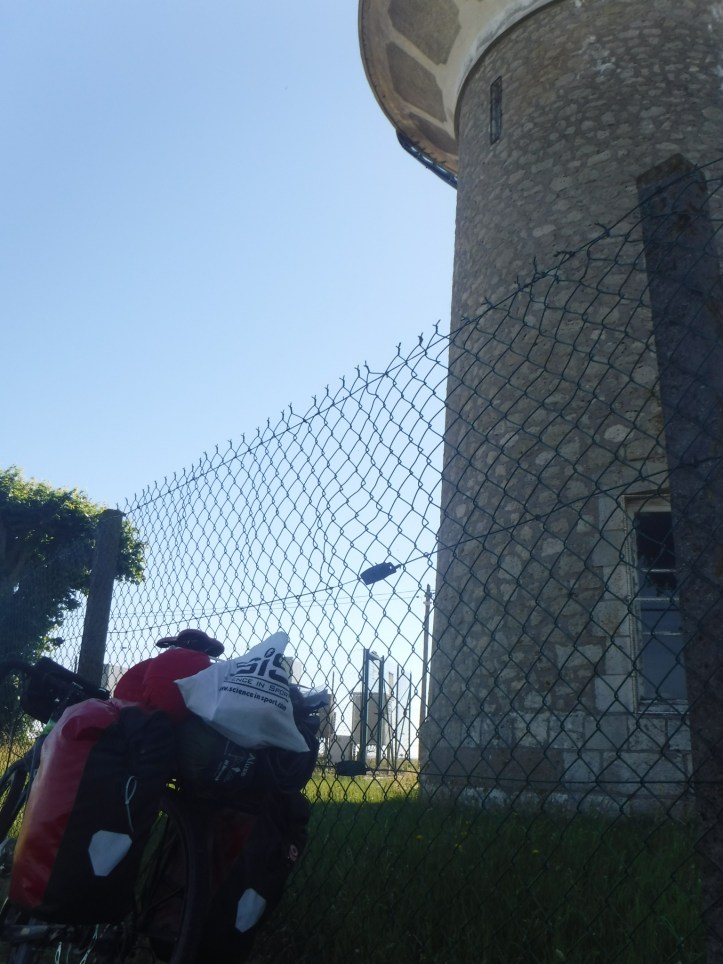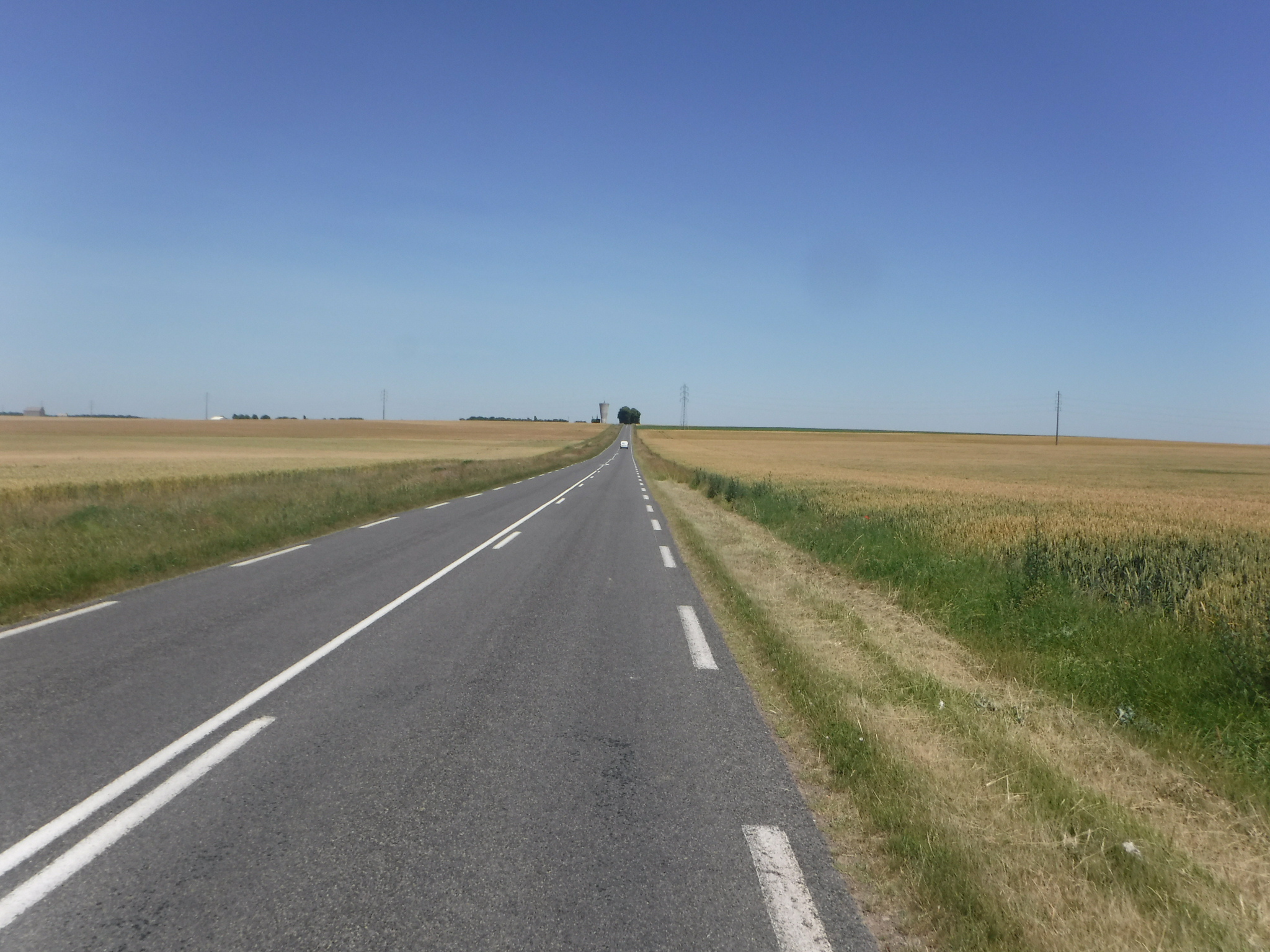 I crossed the A19 before 10:00, and this marked halfway. The early start was paying off but it was still starting heat up this early. Incidentally the wind was supposed to be 5 kmh from NE (obviously a headwind that had been following my every move) but it didn’t cause too much of a problem. I picked up second breakfast in Ascoux, and got lunch in an Aldi in Pithiviers. After Pithiviers came the biggest challenge, the D2152 – dead straight, but up and down hill for 15km. I stopped frequently whenever there was shade – even the shadow of a water tower, the traffic was light but quite a few HGVs thundering past (but all well driven with no close shaves).