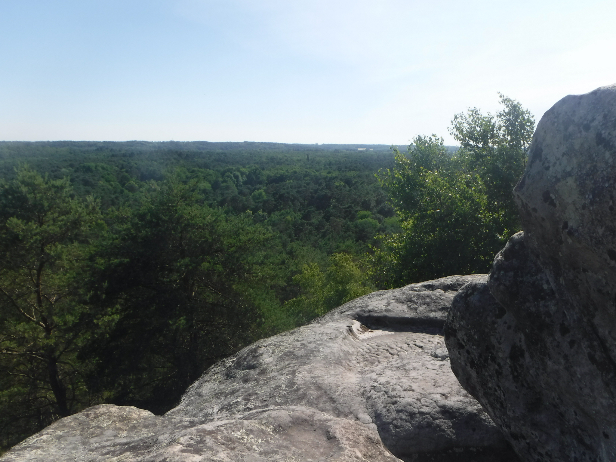 I found a nice shady bench in Maleherbes, before tackling a shorter but hillier straight on the D410. A nice little cut through brought me to the campsite in Milly-la-Foret. I quickly pitched the tent and jumped into the pool, the early start and really pushing for the first half had paid off as it was not yet 3:00. The reason for coming here was to look at the bouldering in the Fontainbleu forest. I’d heard of a route around all the boulders, so I set off on foot to Rock No3. It turns out this route is to encompass all 25 “peaks” in a circular route. I visited peak No2 as well, and in the whole 2 hour walk I did not see another human, nevermind loads of bouldering. The campsite is full of climbers, or cars with the stickers, slack lines between every tree and everyone lounging around on bouldering crash mats – so clearly the climbing exists and I just need to do better research!