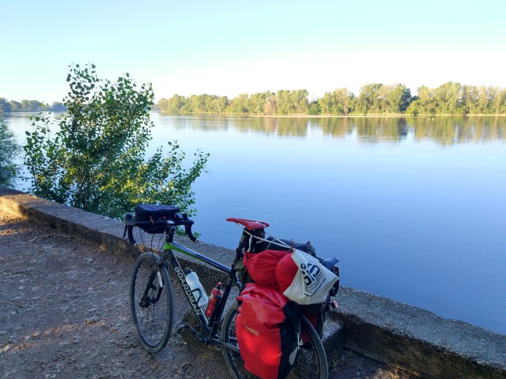 Wanted an early start, but initially got up way too early as it was still dark, but eventually woke again, had porridge, packed and away by 6:45. Very good by my standards. Took a last few photos of the Loire, only to find myself following more water – the Orleans Canal for quite a while.