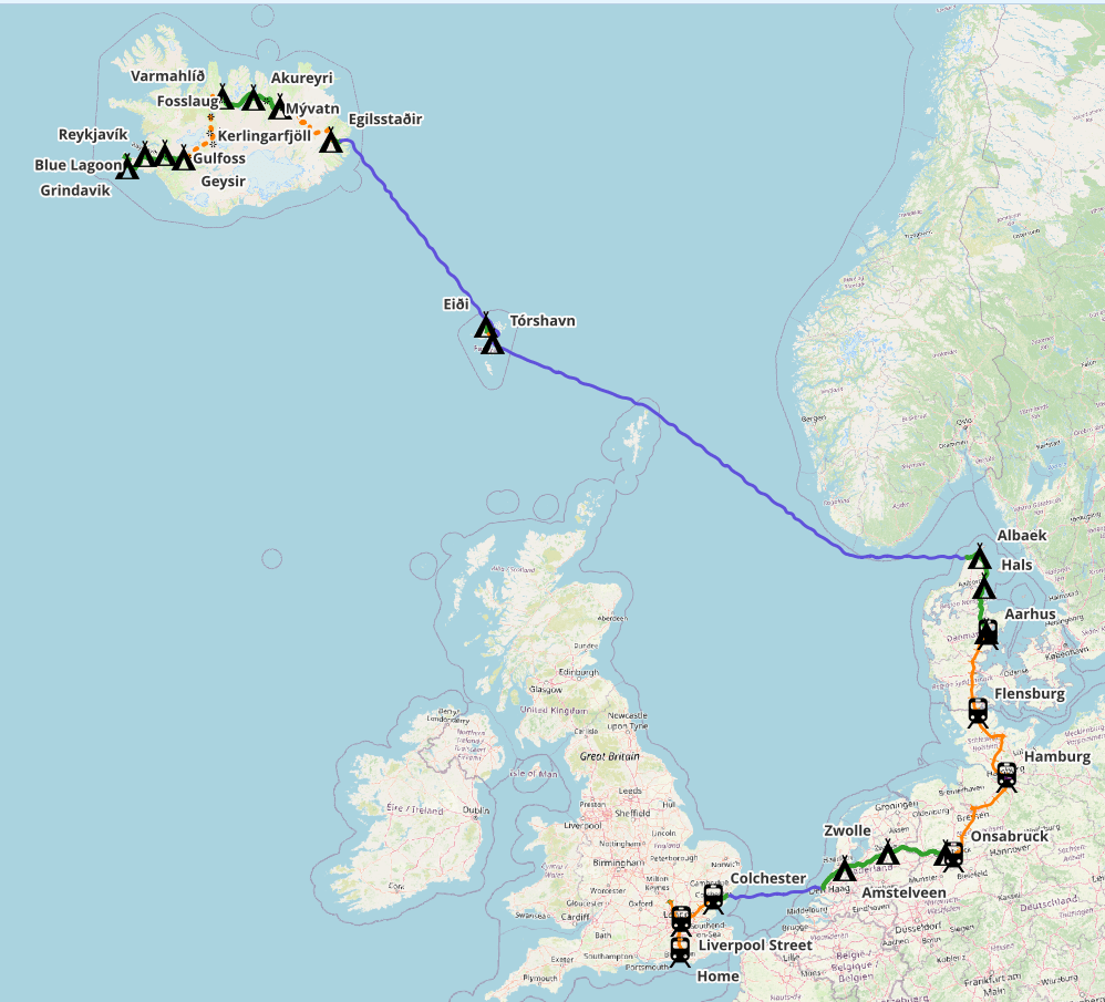 Reykjavik overland, with plenty of boats and a few trains, to make the programme work. It is still a lot of cycling!