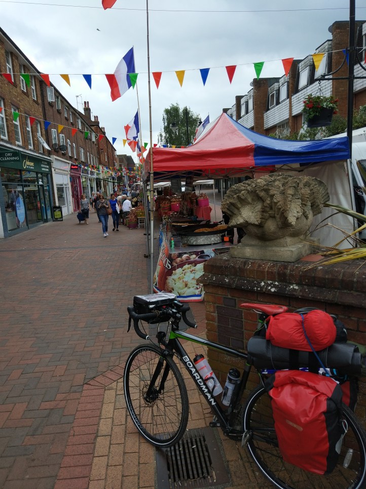 Well…. The day didn’t go too well until the end. Trying to clear up loose ends of work, while packing with the other hand, and not feeling too good was a challenge. When I did get away I was greeted by a French Market in town – very confusing.