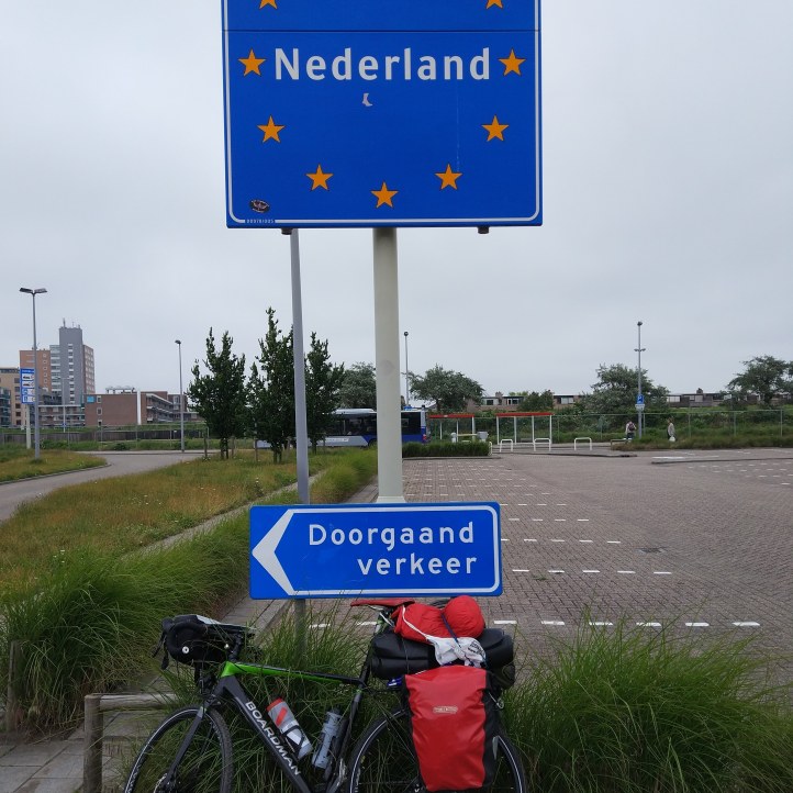 Next day got away about 8:30 (couldn’t find everything, everything else was in the wrong place – so I will get slicker). Hoping to do 175km to the German border (I’m writing this afterwards, but it was a crazy plan – beating my previous unloaded best of a crazy plan around the Ferries of Trondheim by 10km – and I only finished that at 2:30 am, and ran out of water – so drank beer in desperation). Needless to say I didn’t make it (although I think I could have* without trying to navigate through the suburbs of Amsterdam, it being a Sunday so no supplies or easy water, and – yes – the headwind).