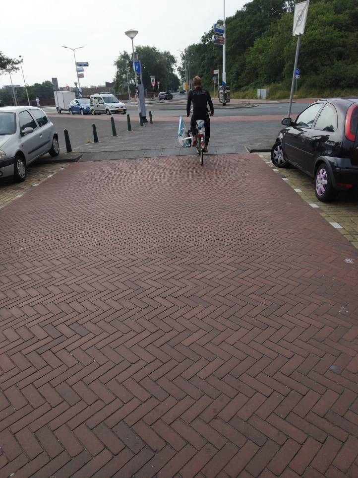 Stopped at Scheveningen Beach for a coffee, and it feels very much like Brighton. Then stopped in a Co-op for, my now traditional, riding food – if it works why change. A loaf of unsliced rustic bread (everything was sliced, and my selection turned out to be museli bread!!!), interesting sliced cheese (the 30 month stuff I got didn’t go well with museli bread, cherry tomatoes (in suitable protective casing), and anything else that catches my eye (in this case Coke, and some unbelievably chocolatey chocolate – by Tony?).