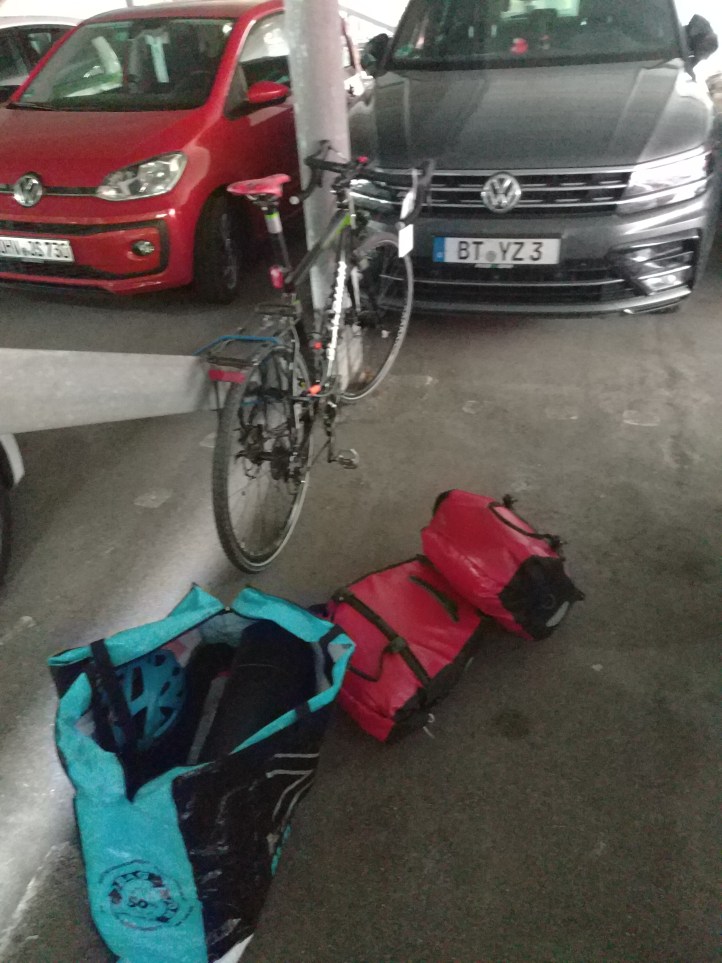 I reloaded the bike, one thing worth mentioning – is that I have a massive cheap holdall (mine is spots direct, but other brands are available, often in a fetching tartan), which is really useful when you need to carry all the luggage in one go. With careful packing I can get everything in mine (vital to fly home, but dead handy in hotels). I headed off with the good sense of direction I gained from walking last night – but ended cycling out of the city on a really nice cycleway the wrong way. Realising my mistake, I had to turn around and get past Berliner Tor which is a multi level, road, railway, pedestrian intersection – but with no clear route for bikes. Soon got back to the station, in plenty of time to check out the platform and find the lift etc.