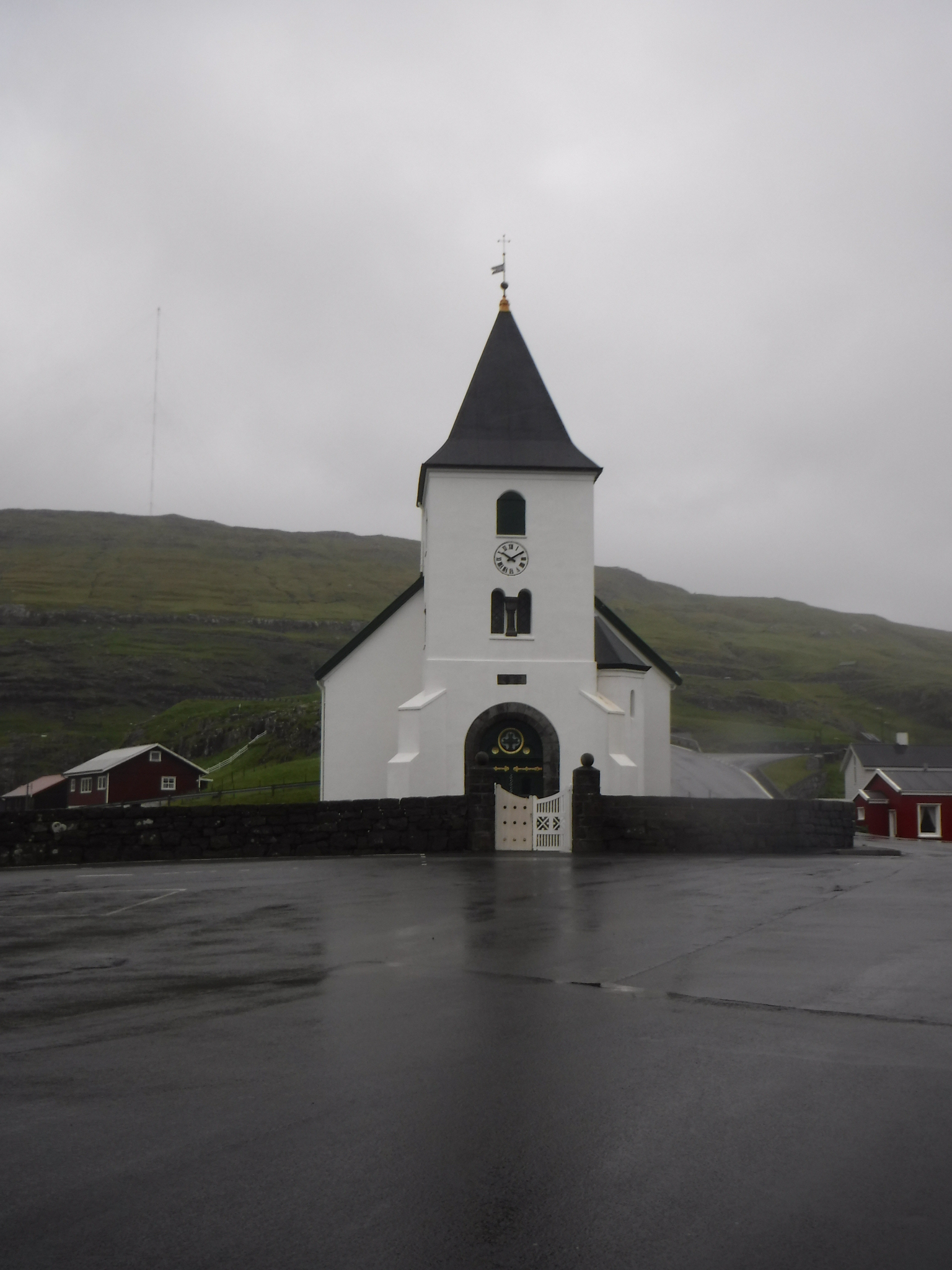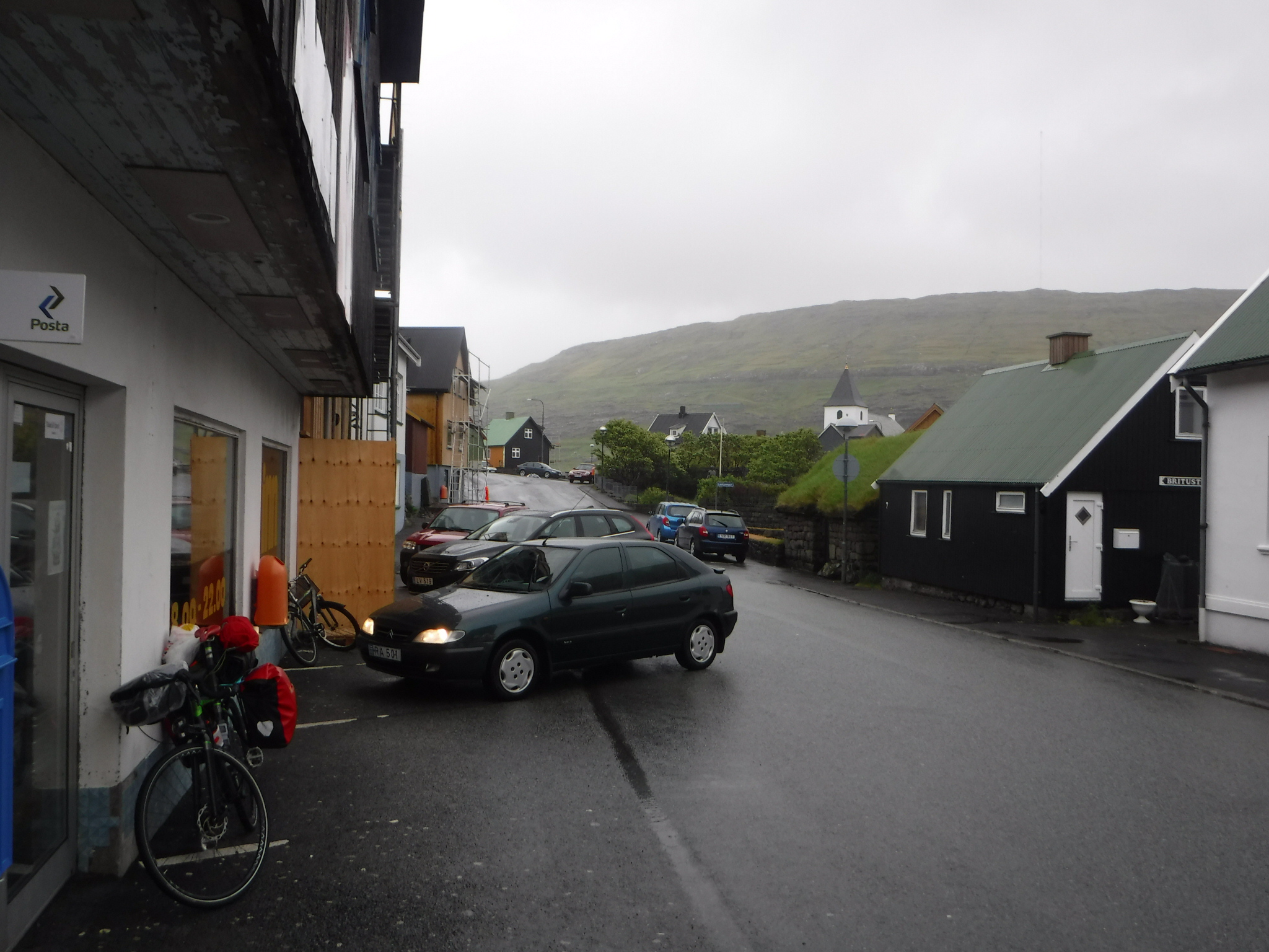 First stop was a stop at the village shop, to resupply as I still didn’t know what conditions I’d be facing. I was taking the road straight to Oyrarbakki, which gave me some choices, either carrying on cycling to Vestmanna (40km or so), or catch a bus to Vestmanna, or Torshavn. I had a quick look around the village, lots of turf roofs and the church looked interesting.