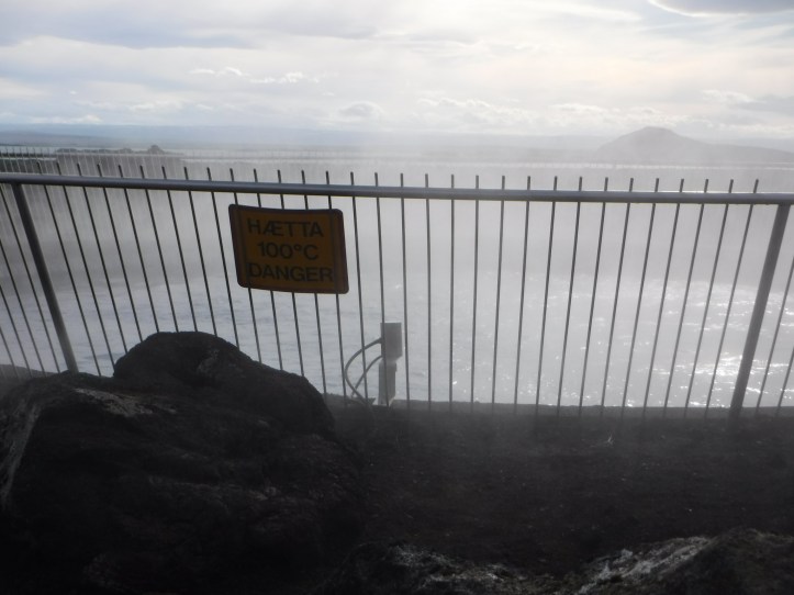 There was one fenced off bit which was a massive cauldron of boiling water – a scary proposition, with it boiling in front of me. The geothermal energy comes from a “power station” and arrived at the pools at 130°C.