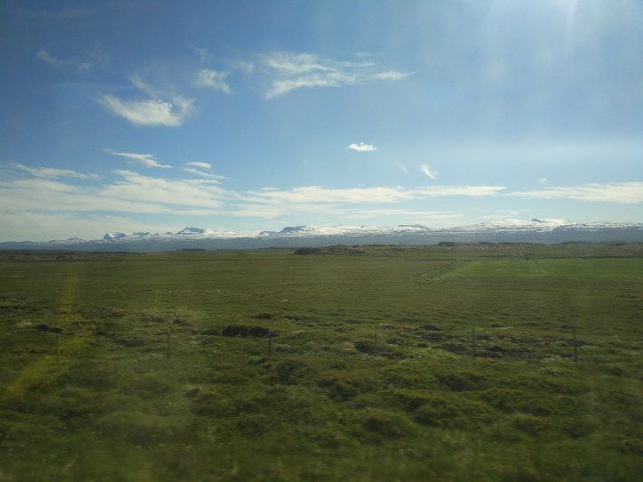 Initially the scenery was green meadows, but as we climbed it became more barren with the only occupants being sheep or goose type birds with chicks. The bus also passed an area with lots of steam coming from the ground, which was clearly a big tourist attraction. It was close to my destination, just before going up and over a mountain pass, but close enough to cycle back to.