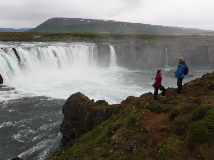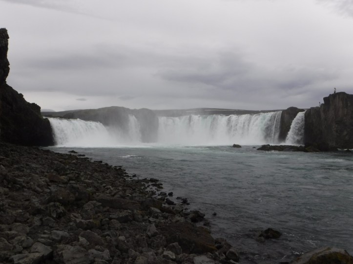 Pushing on, it wasn’t too far to Godafoss, an immense waterfall where the water cascades down almost in a half circle. I locked the bike up and took a stroll around the waterfall, its very impressive, and the power of it is hard to comprehend. This, and the geothermal area (especially the 100°C tank I saw yesterday), give the feeling of how hard it must be to harness these particular natural elements.