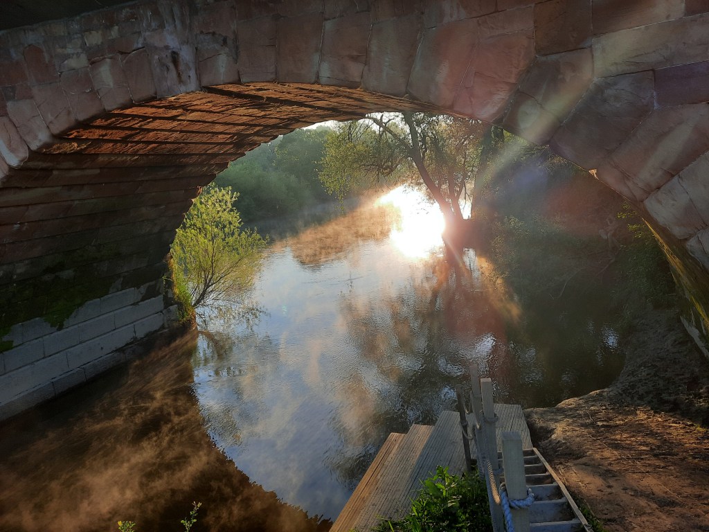 I woke at 5:30, for a quick stroll up the hill to the portaloo (the only facilities for camping), it was a glorious morning. The River Severn curls around the camp field, and as the sun was just rising, mist was coming off the river. I took loads of photographs as it was hard to capture with the low sun.