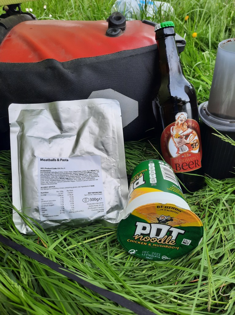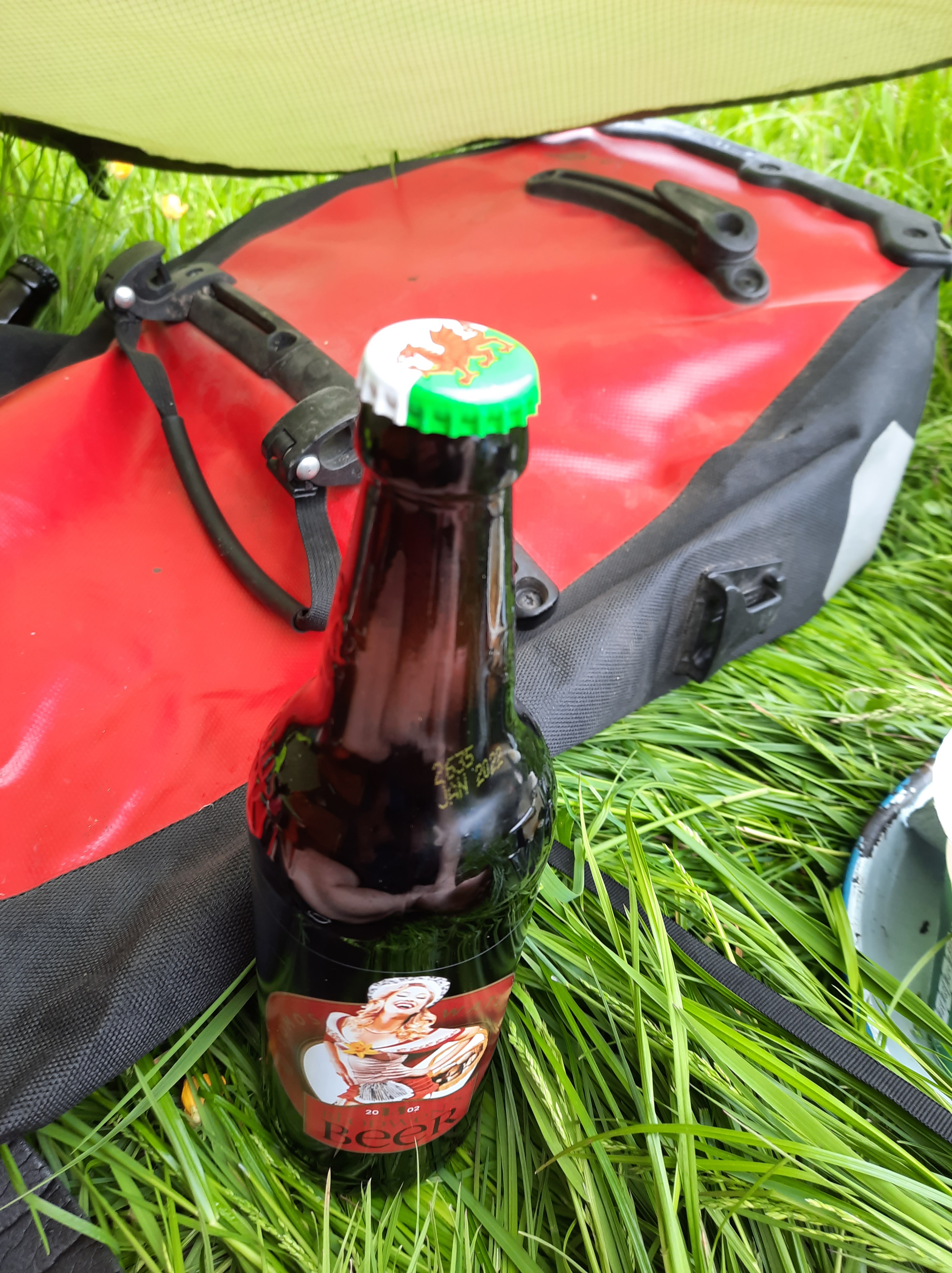 As expected I decided not to go to the pub, so it was Pot Noodle, supplemented with food from the depths of my bags- my emergency Meat Balls and Pasta (expired 2020, has been on many tours!) and a tin of rice (not pictured). Should give me enough energy for the same but a bit longer day tomorrow- I hope! Washed down with a proudly Welsh beer, I’m going to save the bottle top.