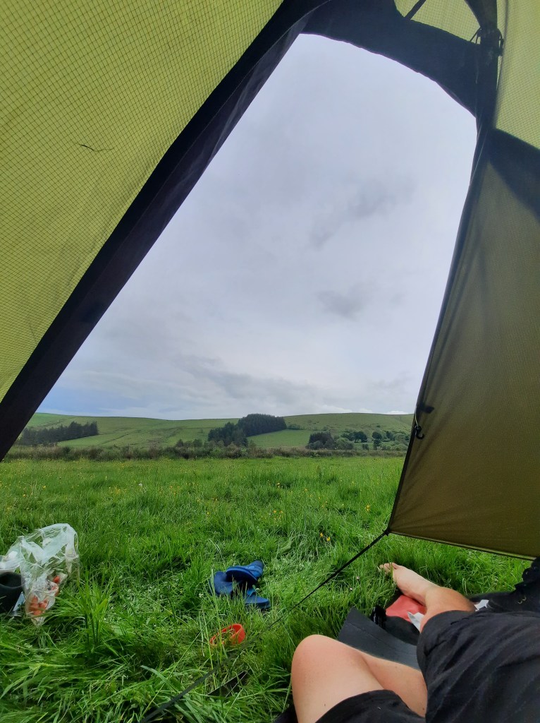 With only 10km to go, I needed to shop. The campsite I was heading for was near a pub (presuming either/both were open) and I couldn’t find anything I fancied in co-op, so I opted for a pub dinner. I bought a backup pot noodle for emergencies. This plan assumed it was 10km downhill to the River Wye. It wasn’t, it was even more up hill. When I reached Llangurig,  both pubs were open but it was quite a ride to the campsite and it just started to lightly rain, so I had the feeling I wasn’t cycling back. It was another Camping & Caravan Club site, really basic, but really nice and only £5. Had to cross the River Wye, its a tiny river here.
