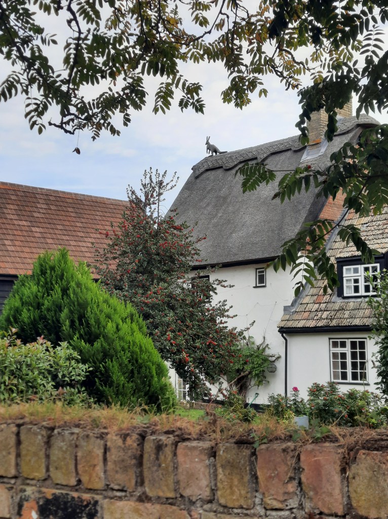 The route went through some really nice little villages with thatched cottages. A lot of them have straw animals on the ridge (in Peru they have terracotta cows – ask me about them). Once you start to see them, you notice them everywhere and I’m sure tey tell a story of the owners. I spotted a kangaroo, which is self explanatory, but not sure about a house with a witch on it!