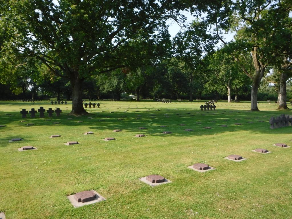 Another good night’s sleep, but no rain – luckily as I left my washing out! Camping late doesn’t give you much time to get your washing dry! Got away by 9:00. Had to return my shower smart card to get my €10 deposit back. It took a while, I think they were confirming that I hadn’t exceeded the two six minute showers per day!! My plan today was to get to Omaha Beach, but there were a few things I wanted to see before that. I had a nice ride to the German War Cemetery. It had a nice feel, with the plaques flush with the grass, and a few blocky crosses between graves overseen by a cross on a hill. The most striking thing was that each plaque marks the grave of two soldiers. Howver, the number of plaques just for “a German soldier” or “two German soldiers” was quite upsetting. I suspect it was the price paid for being a defeated occupying force, but nonetheless..