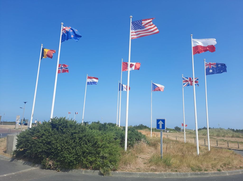 I then headed to Courseulles-sur-Mer, which is the key town for Juno Beach. The Juno landings were primarily by the Canadians, but the armies from many other nationalities were involved, especially those from occupied countries that had ended up in Britain. This made the street bunting much more colourful and I spotted one quite quirky Canadian monument.