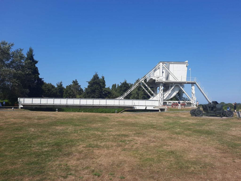 Pegasus Bridge (named after the insignia of the British Airborne unit that captured it), was a key crossing of a big canal, and river. Without it the Invasion would have been stuffed. The old bridge has been replaced, by what would seem to be a replica, and it looks like the old bridge is in the museum looking. So I was a bit confused as there are slightly too many bridges.