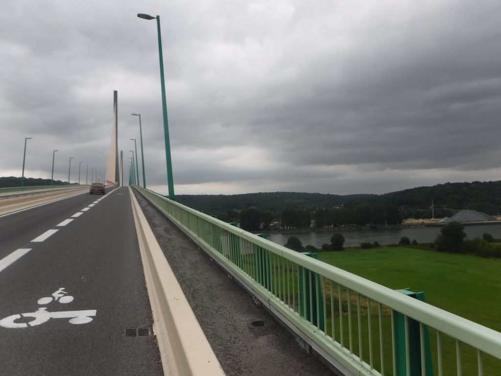 My route dropped down to the Seine, which is immensely wide a some points. I crossed the river on the Pont de Brotonne. It looked a bit intimidating, but wasn’t too bad, and cyclist got a whole lane to themselves.