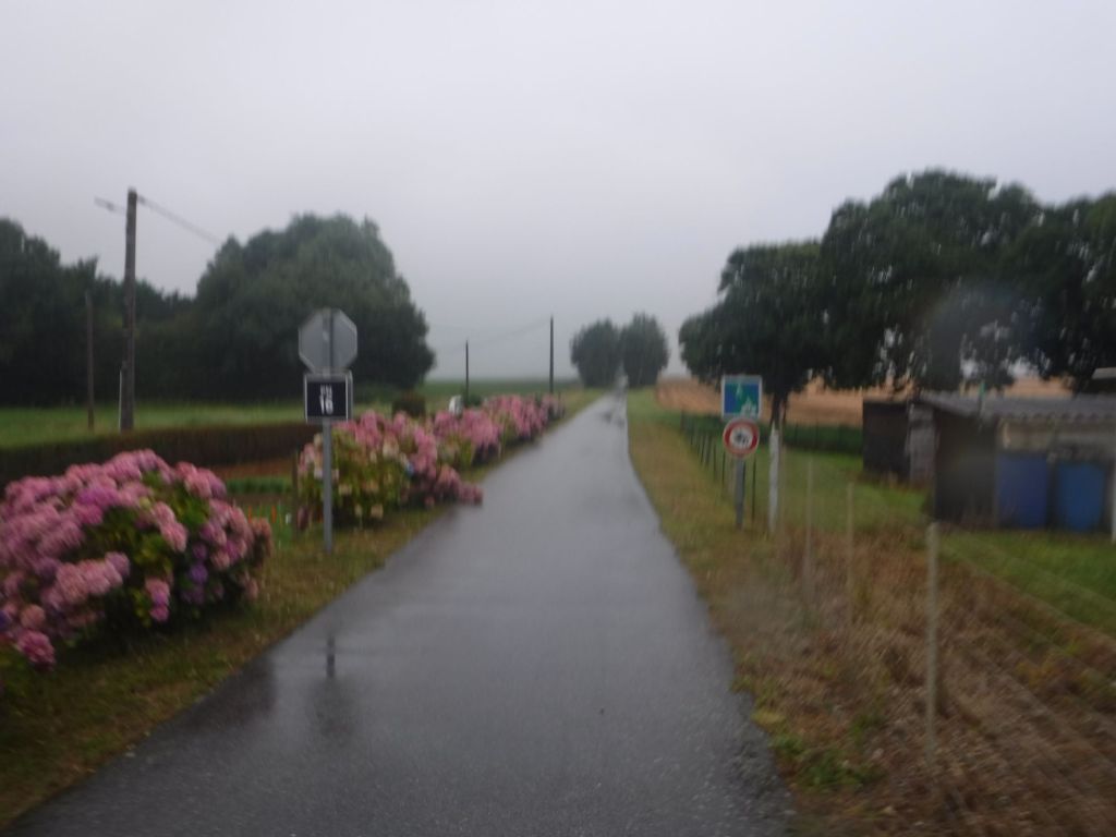 I didn’t take too many pictures as my focus was on keeping moving, and in the right direction. This proved impossible when I came across a police road block. It seemed like lots of caravans (travellers?) were moving into a field. The field already had over a 100 caravans setting up, and there must be more on the road. Obviously it was right at the bottom of a hill so I would have to cycle back up. A cyclist pedalling up had shouted something at me as I was wizzing down, I now know what, but at the time I just replied with the traditional “bonjour”. It wasn’t 100% sure whether the policeman would let me through or not – his English was terrible haha – so I elected on finding a diversion. As I was going up the hill, I managed to stop the Dutch couple. The first diversion ended in a really overgrown bridleway, which was just going to waste lots of time so I headed back to bigger roads. I last saw the Dutch couple as they were ready to tackle the undergrowth as a challenge, they said it would remind them of riding offroad in England!.
