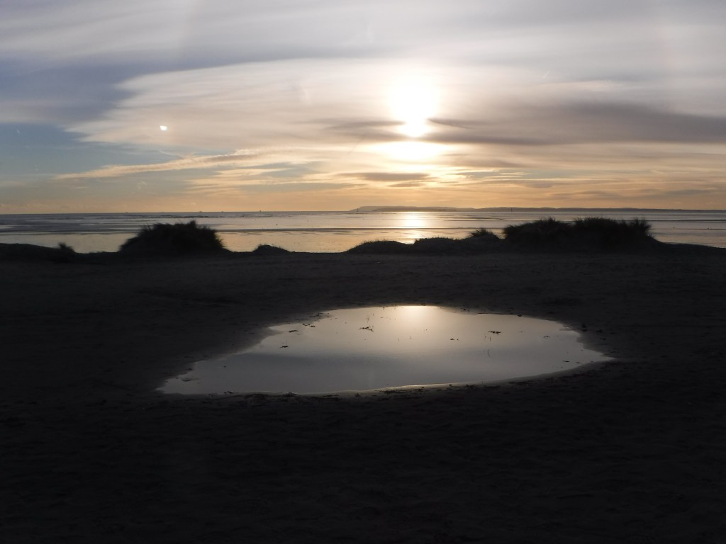 It was almost 10 km around the Medmerry Nature Reserve, which was on good paths, and I had made good time. I had only brought three oat bars with me and was hoping to get to a cafe at the end of Wittering Beach for some lunch. It was open until 4, and I thought I could get there by around 3:00. However, it was begining to dawn on me that it would be around a total of 20km to the cafe, which left me 15km to finish at Fishbourne station. My plan was still just about workable, with 15km taking 3 hours I should finish by about 6:00 and wouldn’t need to walk too much in the dark. This plan was fine until I got back to the beach. The walking was on shingle banks made up large boulders, the tide was in, and there was no avoiding my slow drunken stumbling along the beach. It soon became clear that any timescales I had in my head were going to pot.