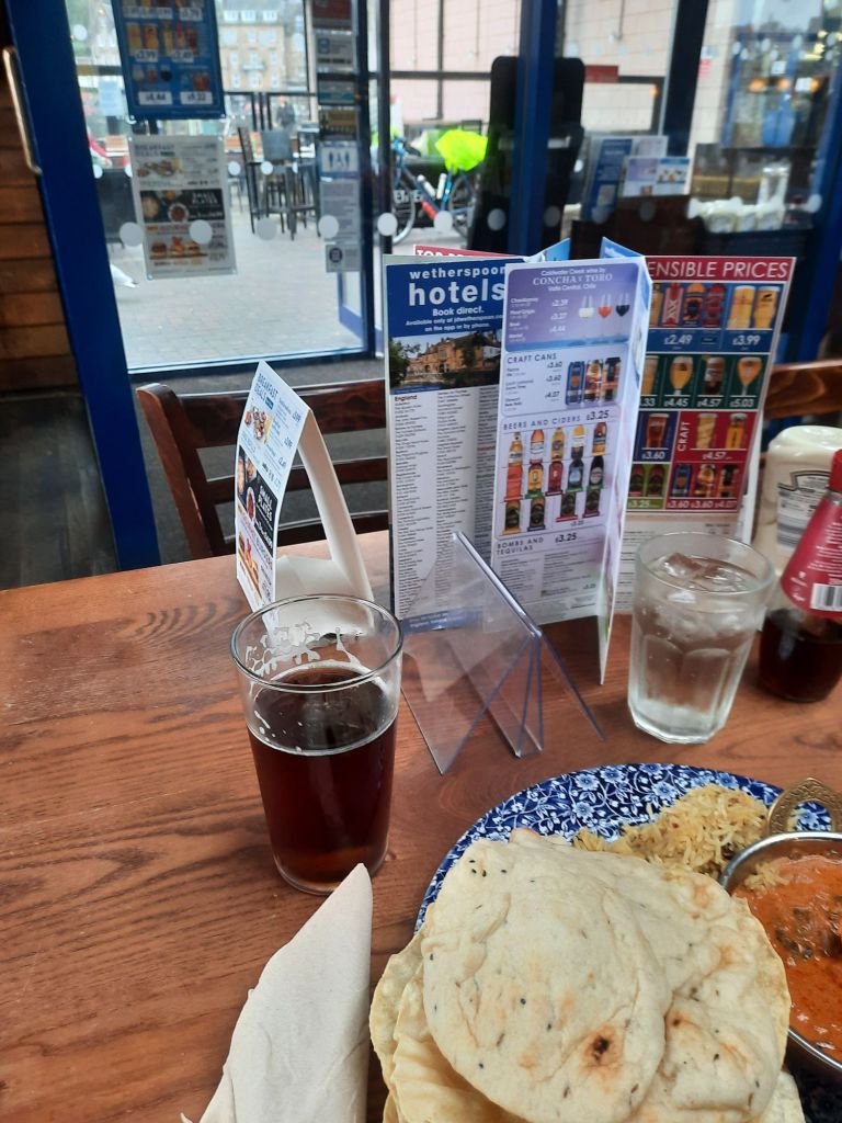 I sat on the seafront for a bit, watching all the tourists in the shops, and the ferry/boat traffic in the harbour until it started raining again. I found myself in a Wetherspoons in the harbour, eating curry and drinking fine Scottish ale for £1.79 a pint. If you can’t beat the tourists then you might as well join them. That said, the big windows and online ordering made keeping an eye on my bike easy.