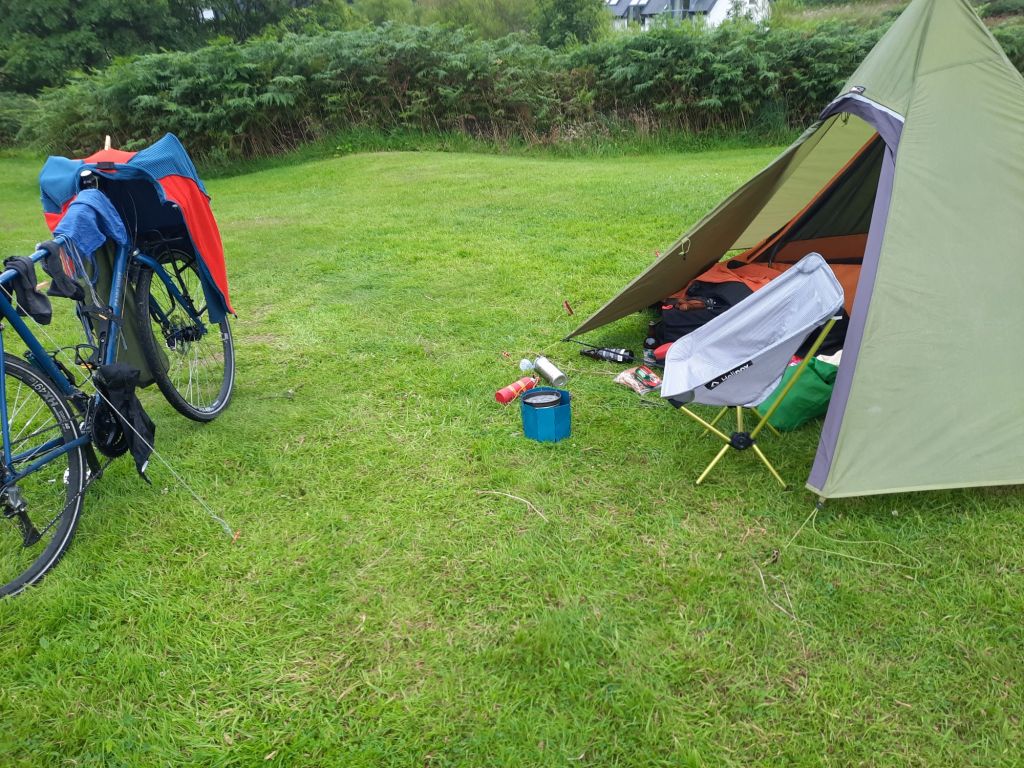 I picked up a few essentials and headed off looking for a campsite. It was about 4 km to the campsite following ferry signs (to Kerrera), although there are ferry signs everywhere. I got a nice pitch in a car free section, with a table and good views across to Kerrera. Although I don’t really need a table, as my luxury item I’ve added to my kit is a chair, it’s a game changer. I’ll tell you more about it later! The site had pretty basic facilities for the cost £21, but did have a campers kitchen (kettle, toaster and microwave), and a “boil notice” on water for drinking – I’ll be using the kettle then!