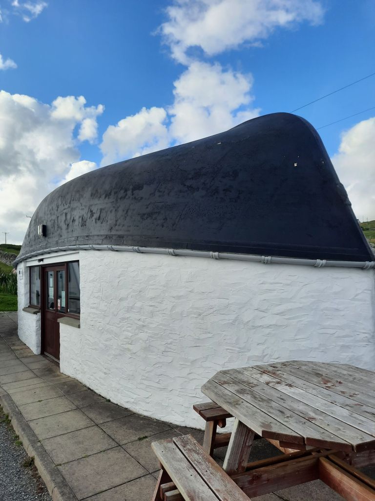 The road passes Sullom Voe North Sea Oil Terminal. The largest in Europe. The plaque said yhat the UK uses 3 whole tanks every day. I wondered whether since the dignagd had been made whether there had been z reduction in this, or not, this would be the proof of Net Zero. Incidentally, cycling through the wind farms today, there was definitely plenty of wind, but many of the turbines were not turning. Talking to Graeme, who I met at tonight’s site, when it’s windy, power is cheap so there is an over supply, therefore it is not worth running the turbines to save wear and tear. We clearly need energy storage, and better ways to distribute the abundance of wind energy up here!