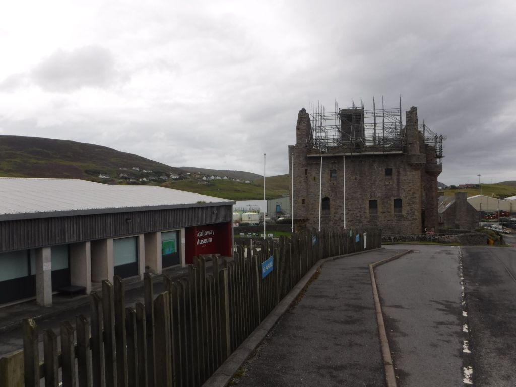 I cycled into Scalloway, which professes to be the original capital of Shetland. It has a Castle, which is still under construction, and a Museum with Shetland ponies around the back.