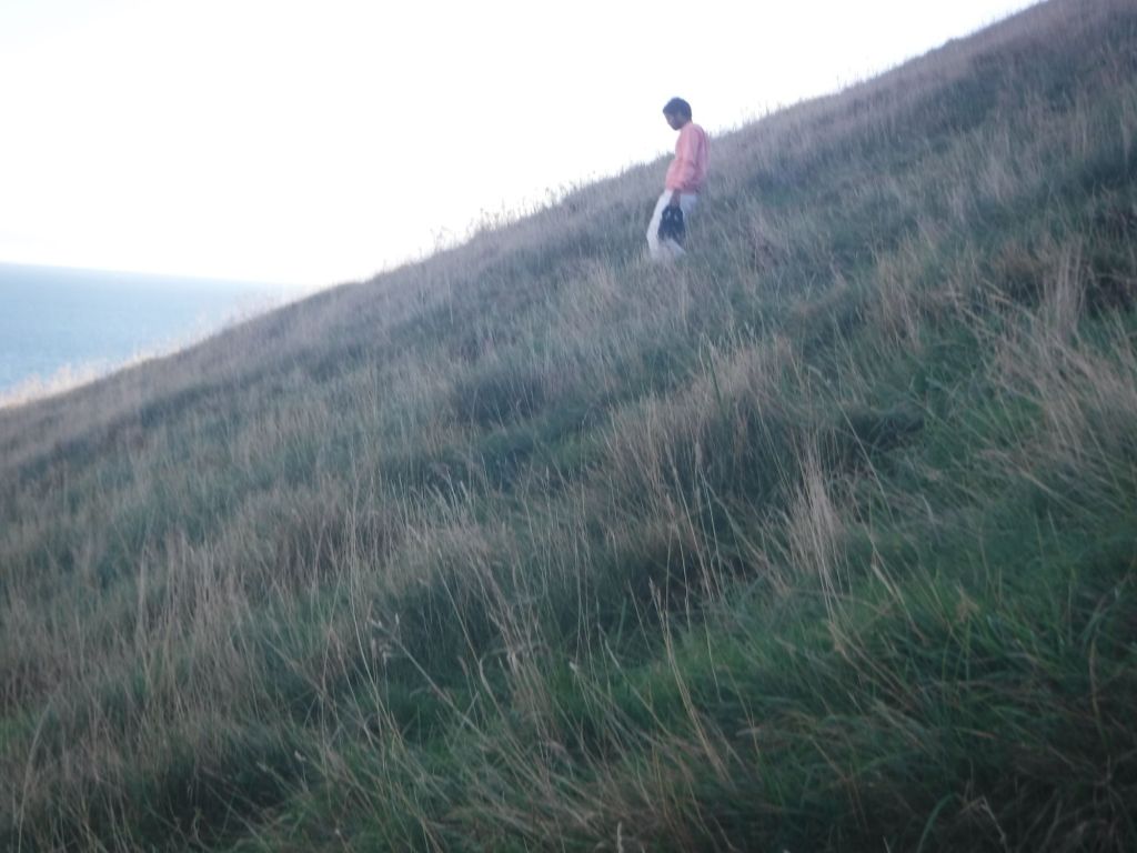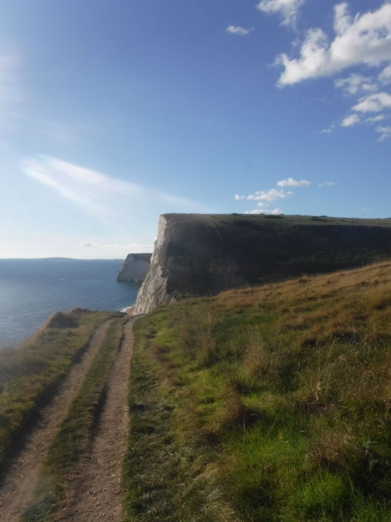 The first one was OK. Just keep it slow and steady, and my poles really help push you up. There were some strange sights, an Indian family walking down in their socks and carrying their trainers. Strange, especially as they kept slipping over and hitting the ground quite hard. The stiff climbs and tricky descents continued. I was really aware of the time, and had identified a number of points where I could escape from the cliff path. I was very keen to keep on the coast path, as each of these escape points would open their own logistical difficulties – like “does Uber even work in Dorset”.
