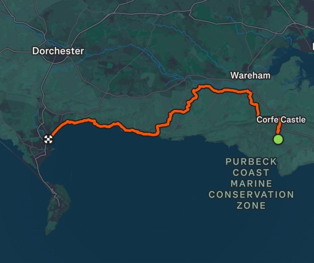 I think my initial plan was quite a long day, but having to divert around the ranges pushed it towards the longest days I have ever walked, so was going to be a challenge. I pieced together a nice route on The Hardy Way, and the Jurassic Path. There was a long road section of about 5km but it was unavoidable. So I was all ready for a crack of dawn start, which was scuppered straight away by the very civilised breakfast times of 8:45 to 9:30. Hence, the unfocused chewing on my bacon was causing me some stress.