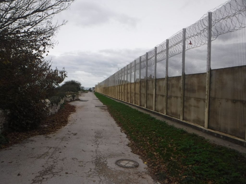 I passed a few groups of buildings, the first looked like may be another prison or military establishment. I could see lots of kids on the horizon and the sound of a game of football. I wondered whether it might be another young offender institute. I was a bit alarmed when I saw the state of the fence, but I’m pretty sure it was just a group of industrial buildings and sports facilities.