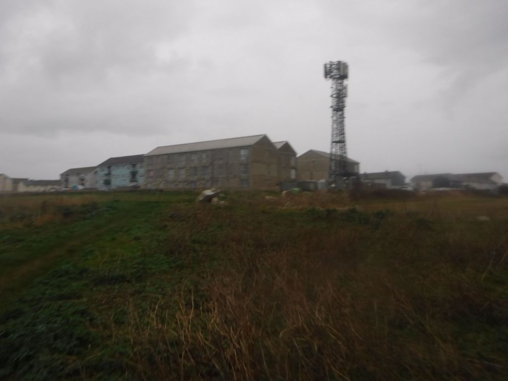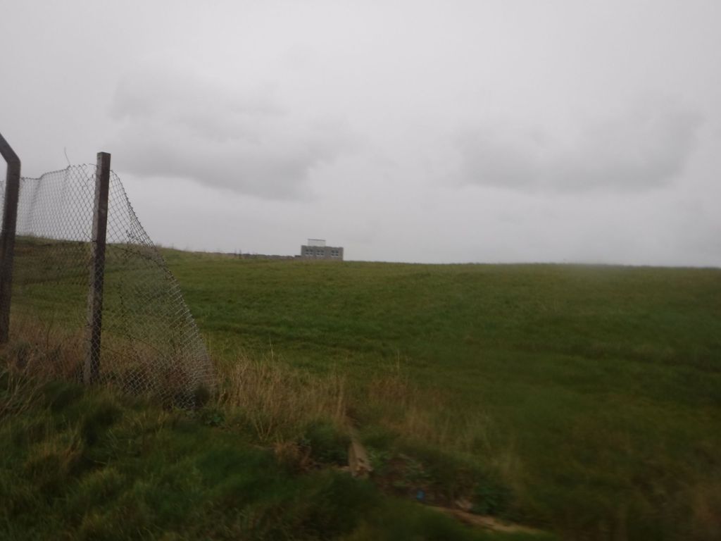 The next group of buildings were housing blocks on the cliff top. The new, unfinished blocks definitely looked like prison buildings to me through the grey rain.