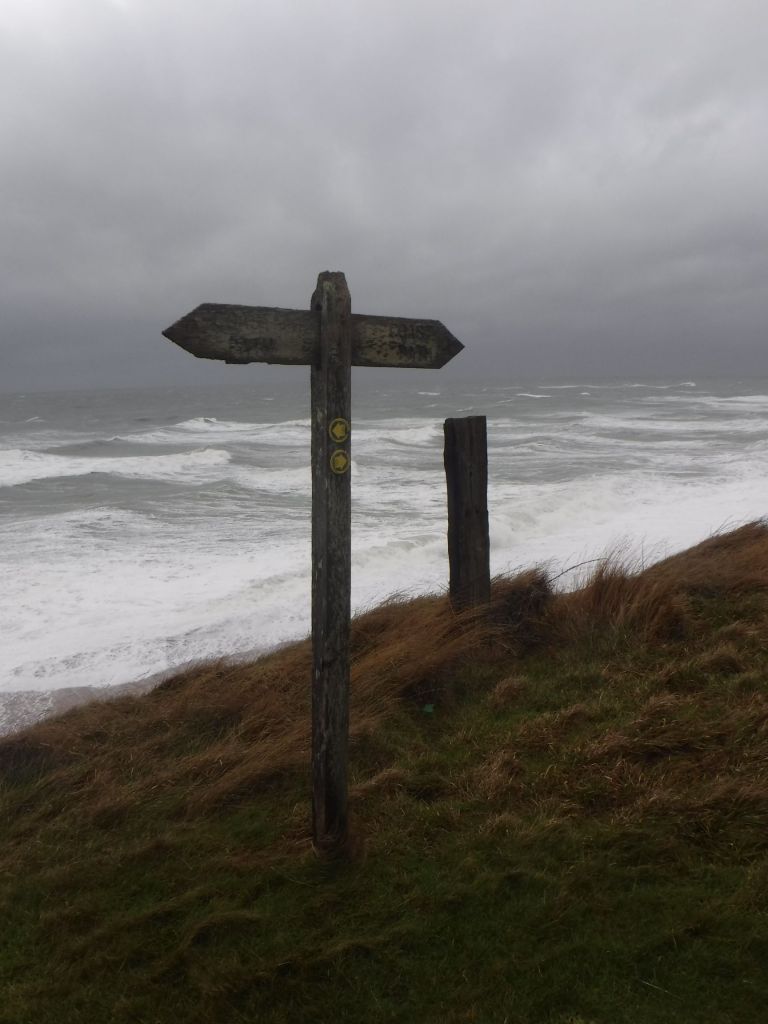 As I crossed the site, I noticed a “Coast Path Diversion” sign, and given the recent falls (both the cliffs, and myself) I decided to take the safer route. It headed out of the caravan site and up onto a golf course on the cliff top. I’m sure this was an easier route, but given the wind, the time of day and how tired I was, it was the right choice.